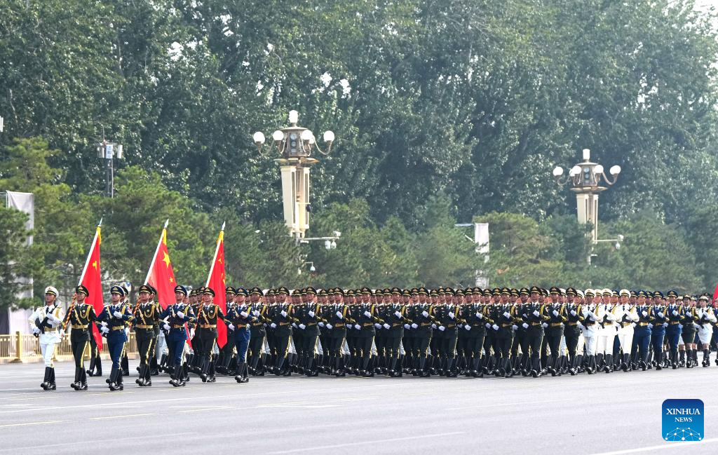 Formación de guardias de honor del EPL marcha por Plaza Tian'anmen