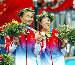 Los campeones defensores del título de dobles mixtos de bádminton, Zhang Jun y Gao Ling, no permitieron que se les escapara la oportunidad después de que los surcoreanos primeros sembrados cayeran en los cuartos de final, al derrotar hoy a Robertson y Emms de Gran Breta?a 15-1, 12-15, 15-12.
