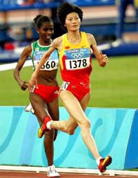 Xing Huina de China salió de la nada hoy viernes para ganar la medalla de oro en la competencia de los 10, 000 metros para mujeres de los JJOO de Atenas.