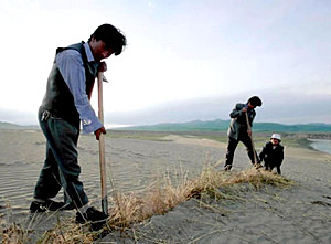 La Administración Estatal de Silvicultura ha empezado a poner en marcha un plan de prevención y tratamiento de la arena, proponiéndose contener básicamente la tendencia de la ampliación de la desertización para el a?o 2010; en el a?o 2030, sobre la base de la consolidación de los resultados del tratamiento del período anterior, se empezará a reducir a?o tras a?o la superficie desertizada; en el a?o 2050, será básicamente tratada toda tierra desertizada susceptible de ser tratada bajo las condiciones del momento, para terminar construyendo un ecosistema relativamente perfecto en las zonas de desierto.