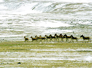 10.000 ejemplares. Del ciervo Cervus eldi de Hainan sólo quedaban 26 ejemplares, pero ahora ya superan la cifra de 800. La gaviota hereditaria ha aumentado de 2.000 hasta más de 10.000 ejemplares. El tigre, rara vez visto, aparece de cuando en cuando en el Nordeste, Este y Sur de China. Se está acelerando la investigación y estudio sobre la reproducción artificial del delfín blanco. Gracias a los persistentes golpes a las cazas ilegales, más la coordinación de varias organizaciones de la comunidad internacional protectoras de animales, el antílope tibetano, cuyo número descendía vertiginosamente por la caza ilegal y grandes matanzas, ahora goza de un reposo que favorece la reproducción, y se encuentra a un nivel en torno a los 70.000 ejemplares.
