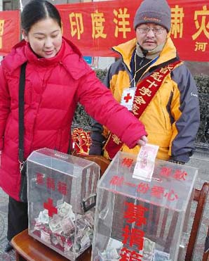 Líderes de estado de China hicieron donaciones esta tarde para los países severamente afectados por el devastador sismo y los maremotos del domingo, a través de la Sociedad de la Cruz Roja de China.