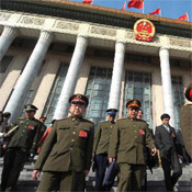 El día 14 se clausuró la III Sesión de la X Asamblea Popular Nacional en el Gran Palacio del Pueblo en Beijing. En la foto, diputados saliendo del salón de reuniones.