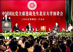 En su discurso pronunciado en la Universidad de Beijing, Lien indicó que la tendencia histórica y la aspiración común del pueblo le estimulan a asumir la responsabilidad histórica de conseguir esas metas.