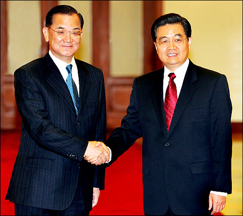 El Viernes por la tarde, el Secretario General del Comité Central del Partido Comunista de China (PCCh) Hu Jintao estrechó manos con el Presidente del Partido Kuomintang (KMT), Lien Chan, de visita en Beijing. Este ha sido el primer encuentro entre los líderes de los dos partidos en los últimos 60 a?os.