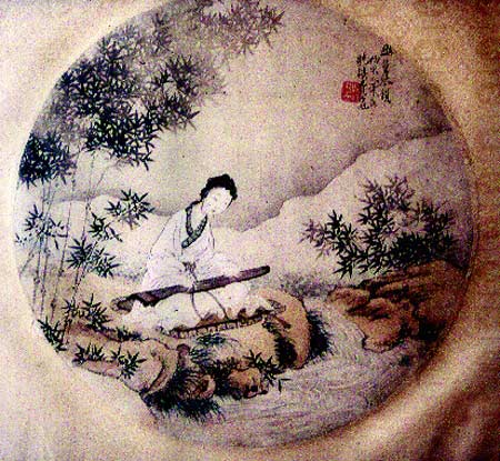 Resuena la cítara en bosquecillo apartado y tranquilo de bambú Fei Danxu (Dinastía Qing)