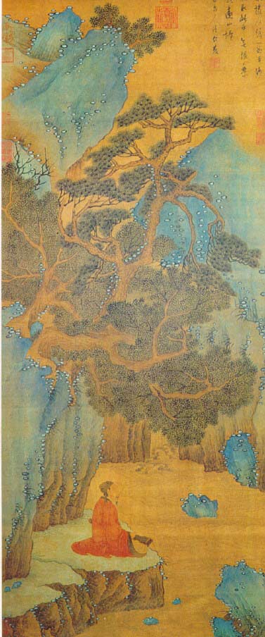 Dibujo de solitario tocando la cítara china ? ?Ren Renfa ? ?(Dinastía Yuan)