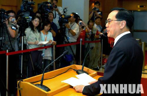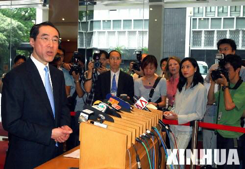 Donald Tsang afirmó el Jueves durante una conferencia de prensa que la Región Administrativa Especial de Hong Kong (HKSAR) le informó de que el Consejo de Estado había admitido su renuncia a secretario administrativo, con lo que su campa?a para el puesto de Jefe Ejecutivo de la SAR había empezado formalmente.