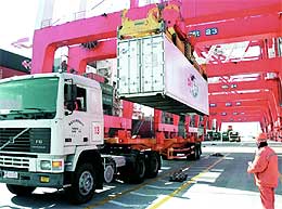 La construcción de puertos a lo largo de la costa marítima tiene como objetivo principal el transporte de carbón, contenedores, minerales de hierro importados y cereales, el transporte roll-on-roll terrestre-insular y el de altamar. El Gobierno ha instalado una serie de muelles de aguas profundas para el transporte de contenedores en los puertos de Dalian, Tianjin, Qingdao, Shanghai, Ningbo, Xiamen, Shenzhen, etc., sentando una sólida base para la formación del centro chino correspondiente. Se ha reforzado el sistema de transporte de carbón, construyendo muelles especializados en la carga y descarga de este producto. A la par, se han modificado o ampliado un grupo de muelles especiales para el crudo y minerales de hierro importados. A finales de 2002, en los principales puertos costeros funcionaban cerca de 1.800 atracaderos de tonelaje mediano y grande, entre ellos, más de 530 de categoría de 10.000 toneladas, con una capacidad de movimiento de mercancías de 1.666 millones de toneladas. El volumen de carga y descarga de algunos puertos sobrepasa los 100 millones de toneladas anuales. Ocho puertos, Shanghai, Shenzhen, Qingdao, Tianjin, Guangzhou, Xiamen, Ningbo y Dalian, han entrado en las filas de los 50 puertos de contenedores más importantes del mundo.