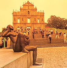 Macao está sobre la orilla occidental de la desembocadura del río Zhujiang, en la provincia de Guangdong y dista 40 millas marinas de Hong Kong. Incluyendo la península de Macao y las islas Taipa y Coloane, cubre una superficie total de 24 km². Es territorio de China desde la antigüedad. En 1553, algunos portugueses se valieron del soborno a los funcionarios locales de Guangdong y lograron el permiso de fondear sus barcos en el puerto de Macao y comerciar desde allí. A partir de 1557, más portugueses se fueron estableciendo en el lugar. Después de la Guerra del Opio, en 1840, aprovecharon el fracaso del Gobierno de la dinastía Qing para invadir y ocupar las islas Taipa y Coloane al sur de Macao.