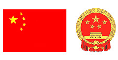 El escudo nacional de la República Popular China lleva en el centro la tribuna de Tian’anmen bajo la luz de las cinco estrellas. Está bordeado por espigas y una rueda dentada.