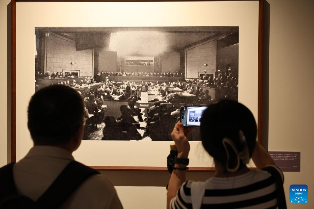 Personas visitan una exposición de arte que destaca la Guerra de Resistencia del Pueblo Chino contra la Agresión Japonesa, en Shanghai, en el este de China, el 1 de septiembre de 2025. Una exposición con más de 140 fotografías sobre la Guerra de Resistencia del Pueblo Chino contra la Agresión Japonesa comenzó en Shanghai el lunes. Organizada por la Agencia de Noticias Xinhua, la exposición es un evento satelital a la muestra principal abierta en Beijing el 26 de agosto. (Xinhua/Fang Zhe)